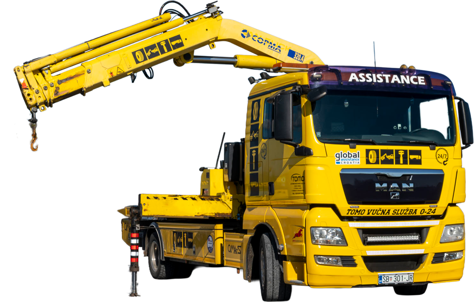 Naša vučna služba TOMO nudi profesionalnu uslugu kamiona s kranom za dizanje i premještanje vozila, strojeva i tereta. Bilo da se radi o automobilu koji je sletio s ceste, neispravnom vozilu koje treba podići ili premjestiti, ili o zahtjevnijem transportu – naš kamion s kranom pruža sigurno i učinkovito rješenje, 0–24h, na području Slavonskog Broda i cijele Slavonije.